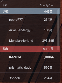 賞金:海賊3000萬海軍390萬