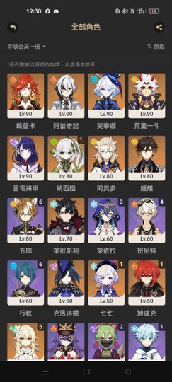 【女、68等、31金角、6金專】1+1遐蝶2+1黃泉1+0長夜月00風僅37金可組記憶戰艦 連體原神 如圖所示