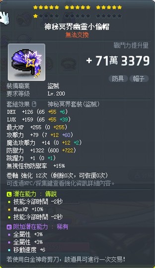 【神秘賊裝】神秘賊裝一套 30-33%幸 -4CD帽 雙爆手