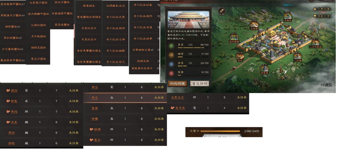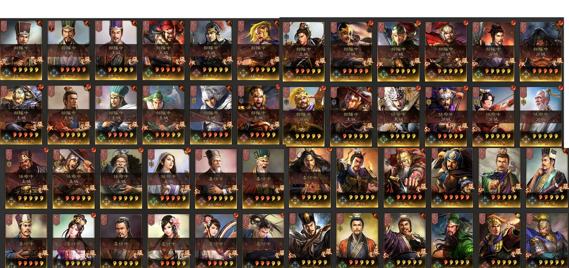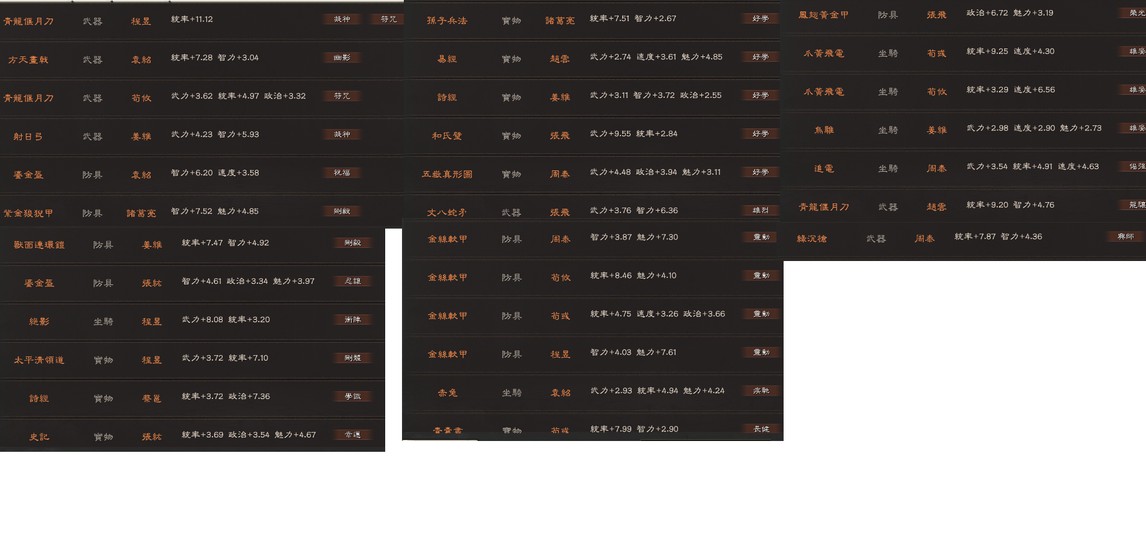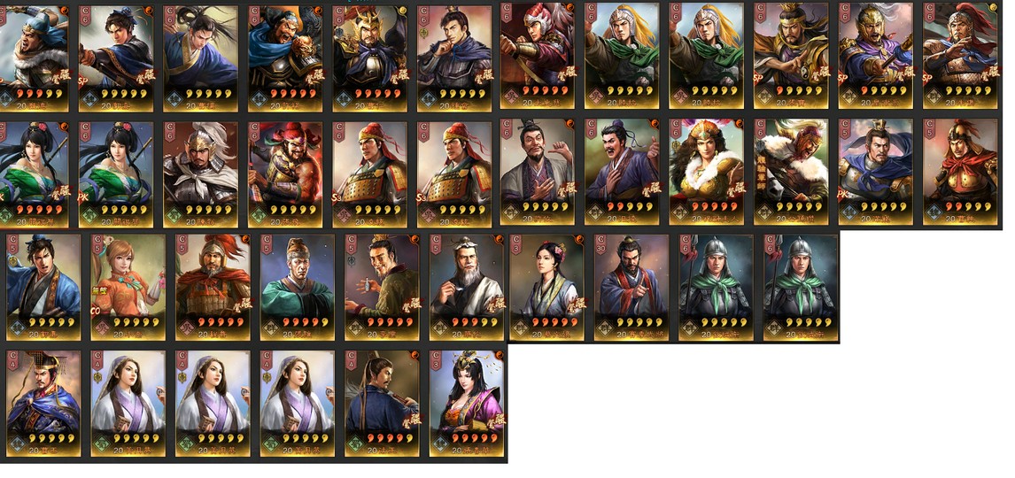 雄烈*1(張飛) 龍驤*1(關興)望族*1(袁術)興師*1(姜維)武聖*1(關羽)