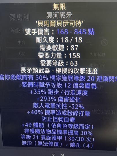 正手:1-藍裝格鬥剪刃2洞+2技+40攻速府+3雷光+1神擺尾、鑲死電+5-5