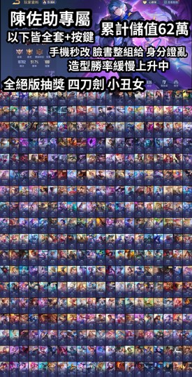 【Garena帳有綁定、先鋒傳說·光影、V10、121英、852造】近九百造三次元 碎月輝煌 全絕版抽獎四刀劍小丑女 多聯動一拳獵人死神咒術綁定漂亮