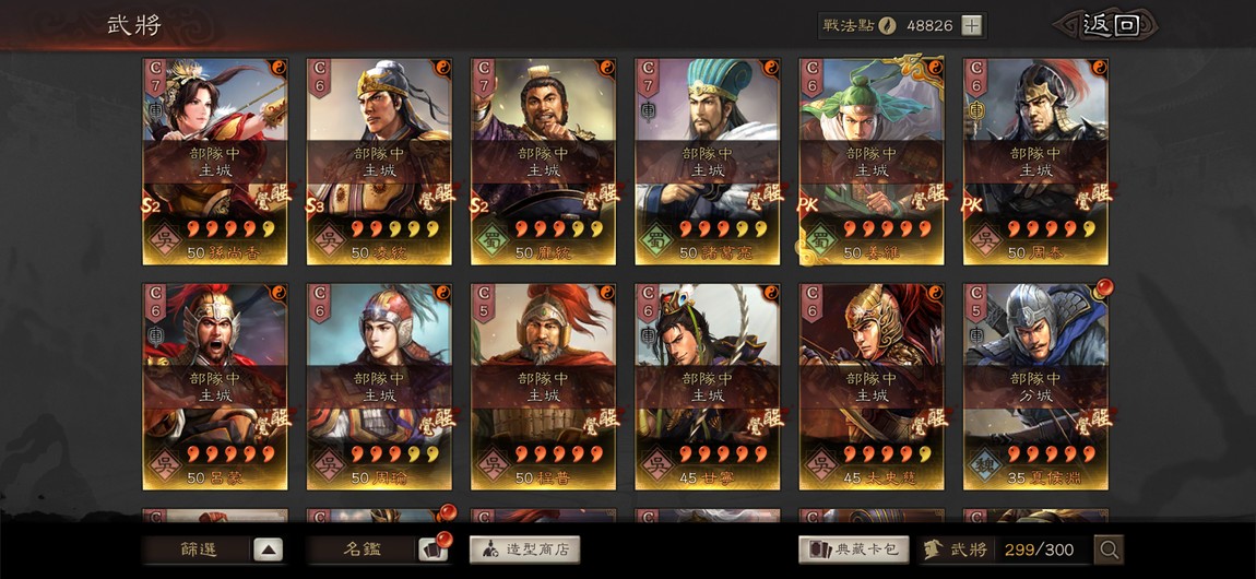 戰法幾乎都有,沒有的陣容戰法就沒特別換