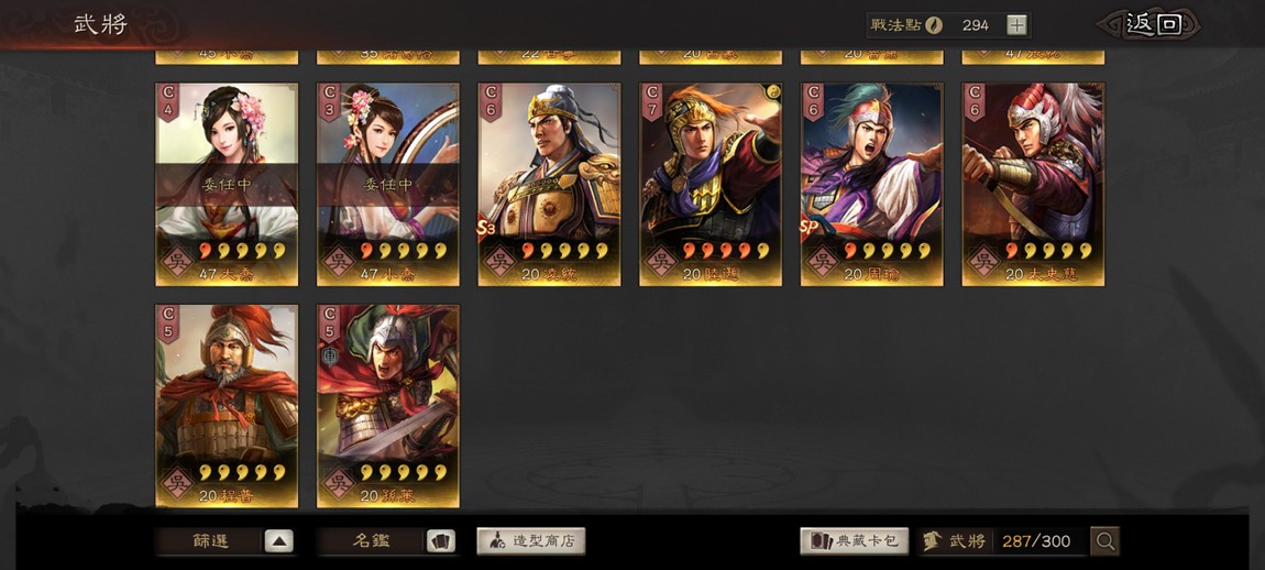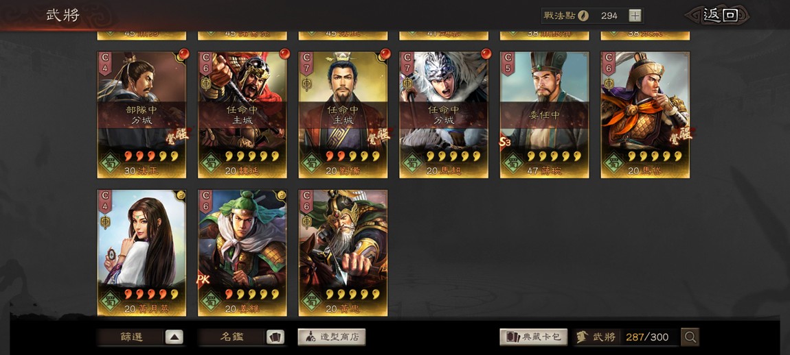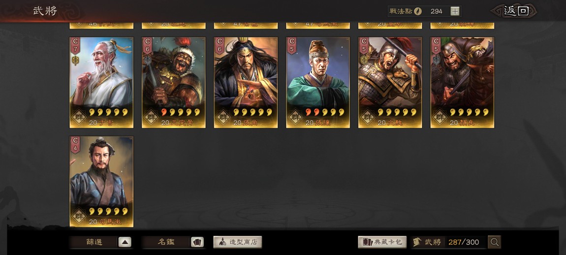 肚子裏還有兩張龐統,滿紅張角等武將