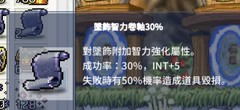 【墜飾智力卷軸30%】成功率:30%,INT+5 失敗時有50%機率造成道具毀損