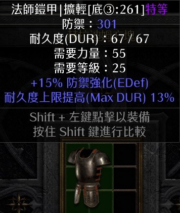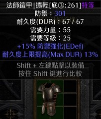 s13 新天梯 15ed 13耐久 法鎧 法師鎧甲 0洞