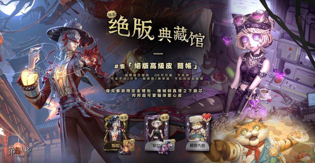 【 絕版典藏館 | 全部都不會再返場了!— 傑克春節限定禮包🏮・機械師鎖芯真理之下👾・邦邦貓咪大廚🧑🍳 】 第五人格絕版高級皮簡帳出售