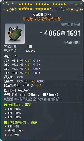 【女武神之心】25星36%敏女武神附加85敏