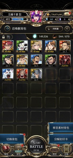 【421等】未綁定/569石/新年黑金光2水1副本卡齊/7張3星時光牌/我推齊/莫里亞蒂
