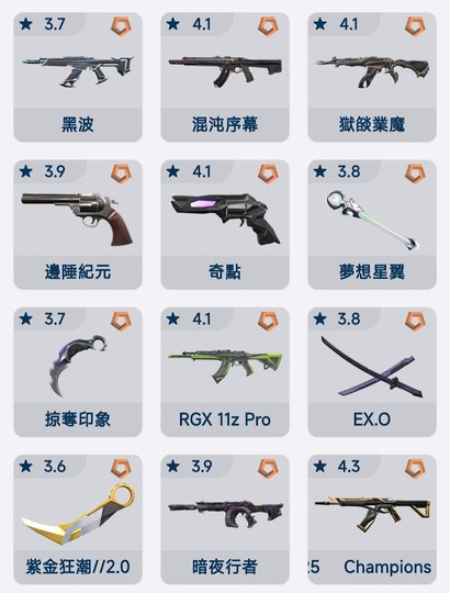 2024冠軍包、2025冠軍暴徒、2025VCT爪刀