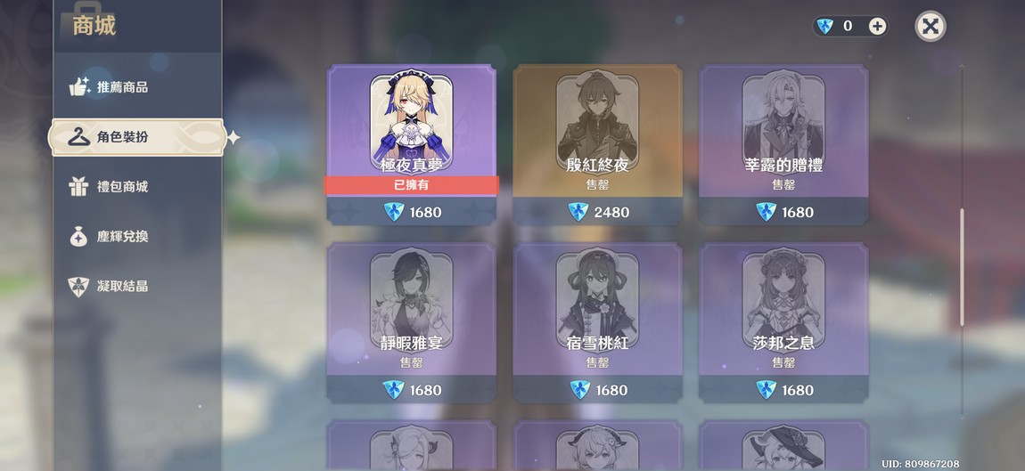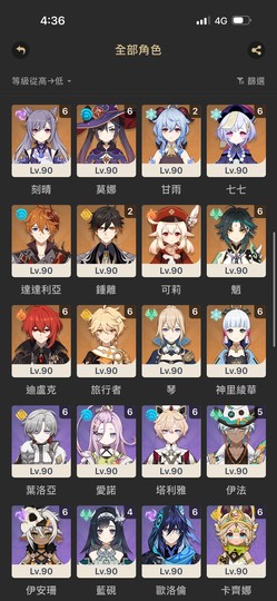 角色裝扮就差凝光和芭芭拉的 其他全買了