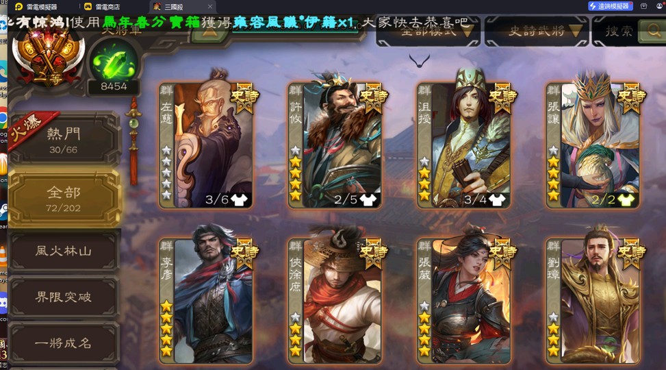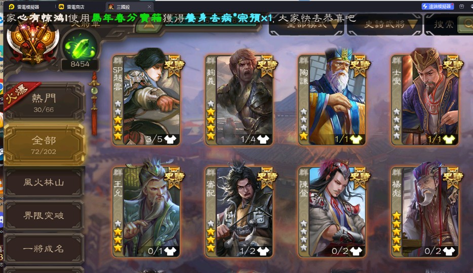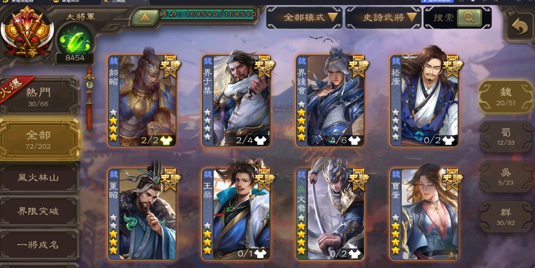 (台服/國際服)一等大將軍 (多史詩, 主打神郭嘉,文鴦,李彥等)
