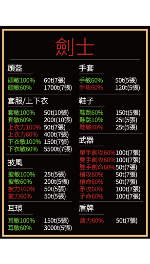 單手劍攻擊60%=15t(7張=100t)