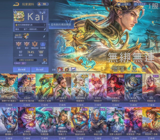 【Garena帳無綁無連、星耀、V4、34英、37造】雙新年都有按鍵還有特爾1200直購