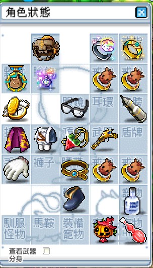 背包:0雪、剩餘楓幣約1400W、背包500格全開