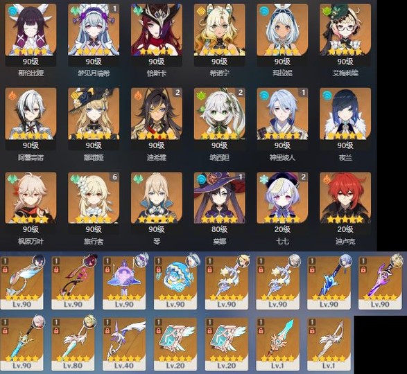 【女、60等、18金角、15金武】44金_月神_瑪拉妮專_C2草神_艾梅莉埃專_僕人_C1綾人專_已畢業_可議價