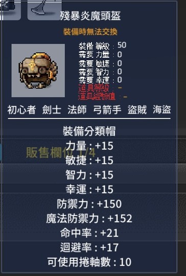 【殘暴炎魔頭盔 炎盔】15 15 15 15基本屬性
