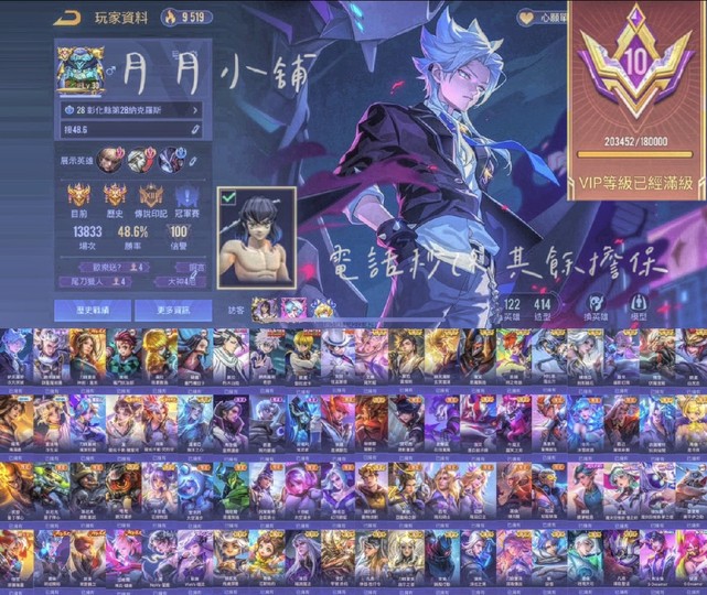 【Garena帳有綁定、青銅、V10、122英、414造】納次群星煌萊炭治郎善意彌豆子白 哉奇犽酷拉基德靈皇玄冥 夜叉惡魔 貝楊時之