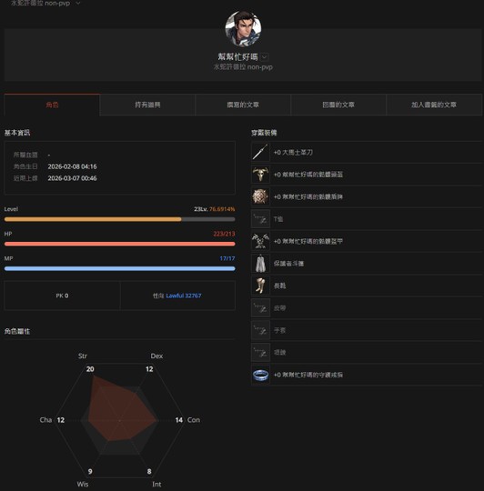 詳細素質跟裝備資訊可看圖片