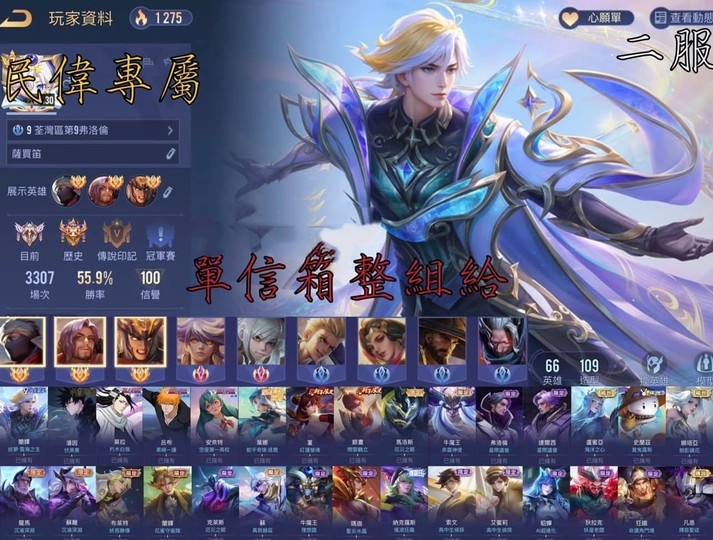 【Garena帳有綁定、璀璨傳說、V7、66英、109造】單信箱 歷史璀璨 三全服 火車 咒術 白哉 新年 星際 厄災 奔雷
