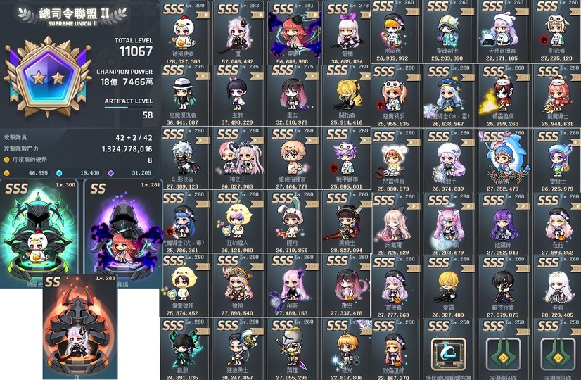 多隻角色260等