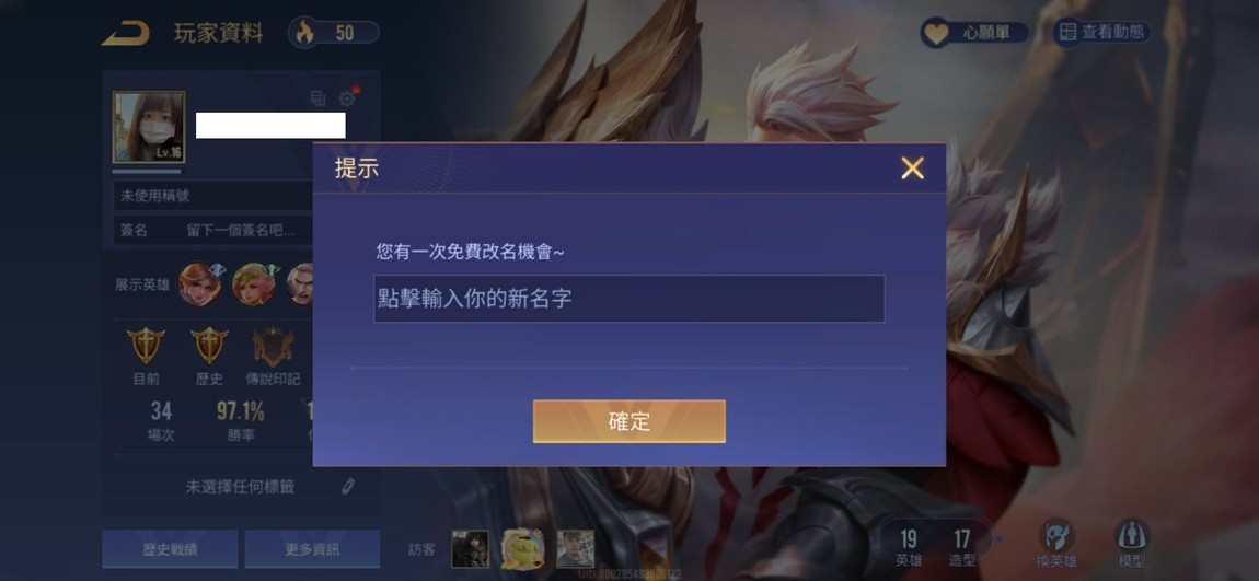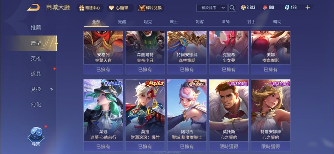 【Garena帳無綁無連、青銅、無VIP、20英、18造】【17等】♞英雄20造型18一手帳號 造型、499點卷 可改名~
