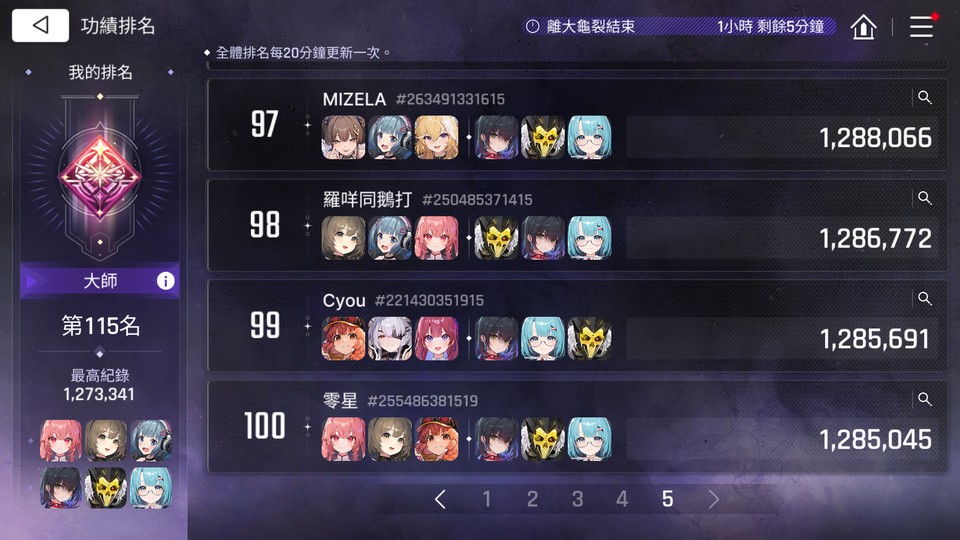 每期龜裂穩定大師段位(100~200名區間),這期上半是大師2