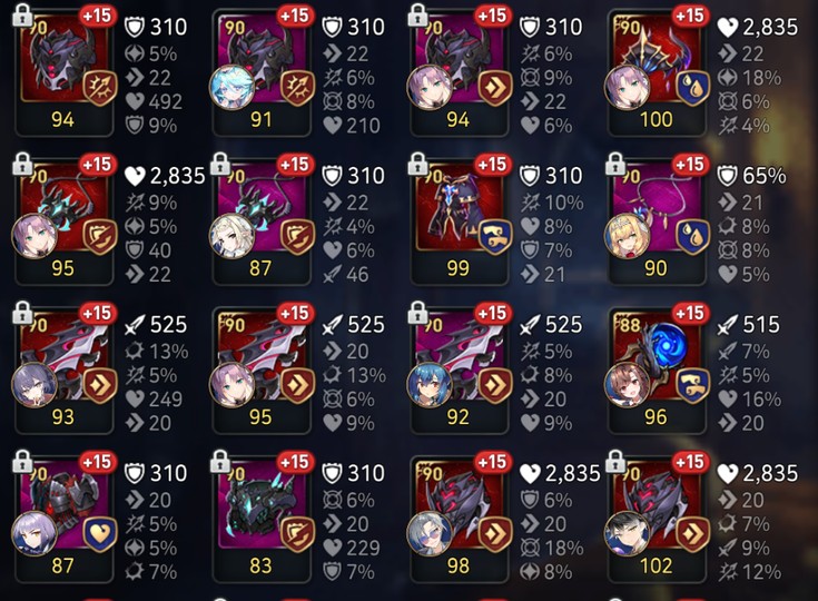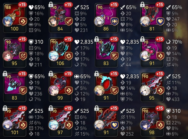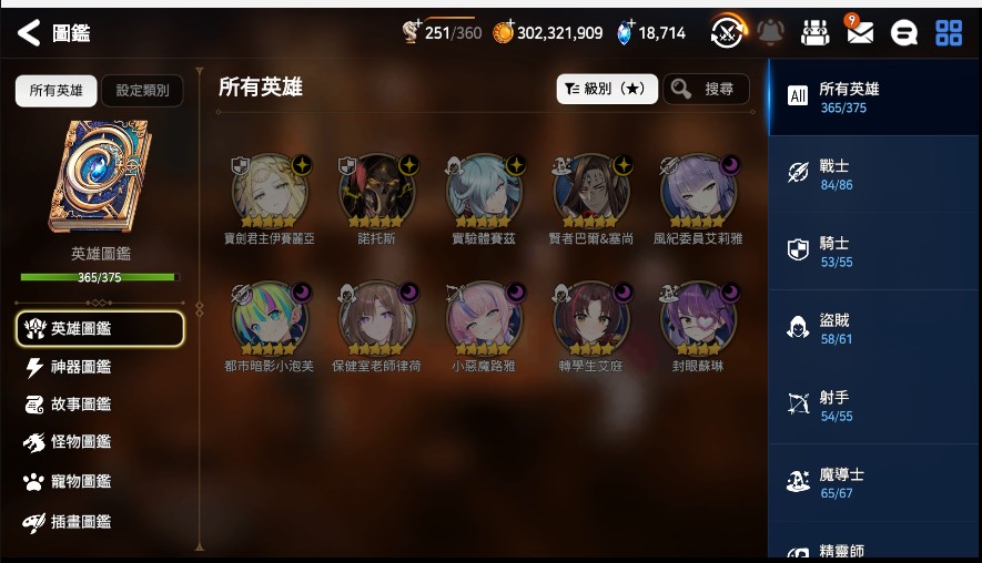 已PO現缺的角色(97%)及神器(97%)。葉子1200、天空石18700
