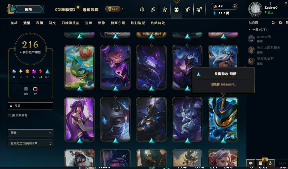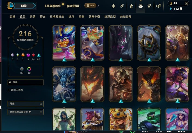 【271等、黃金、500英雄、216造型】英雄聯盟