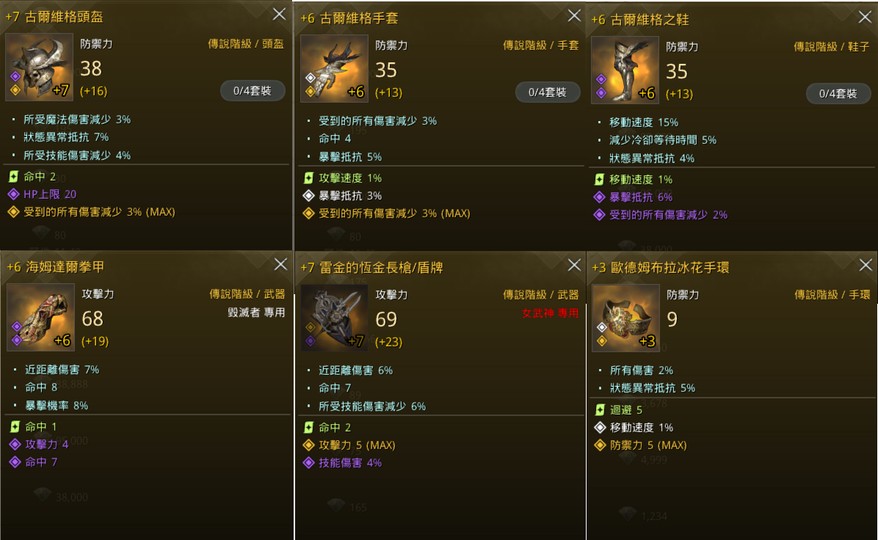 華1 古爾裝(頭+7、手鞋+6) +5木精靈披風 +6海姆拳 +7雷金槍盾