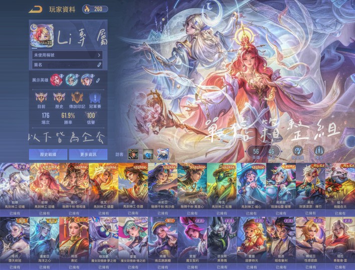 【Garena帳有綁定、星耀、V7、56英、46造】墜天碎冠 馬年全 十二新年 貂蟬 迎曦 熹妃 魔女 琉璃 海洋 多限定