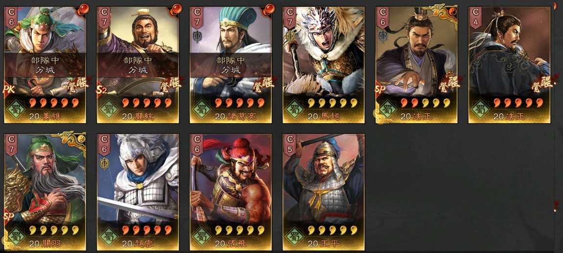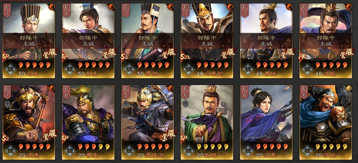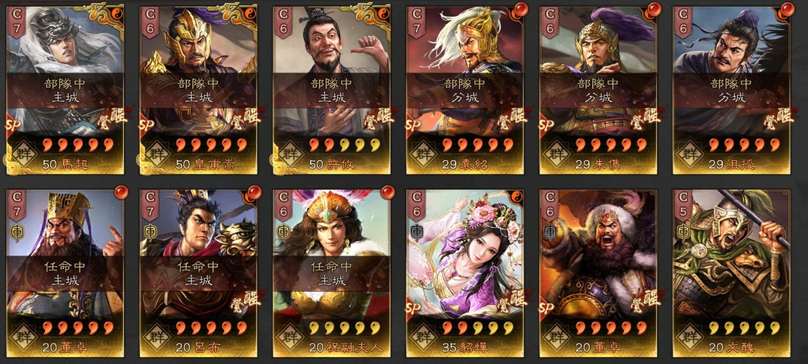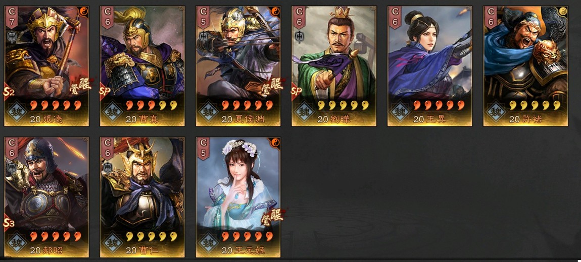 典藏卡僅 SP黃忠、SP黃月英、SP典偉未得。