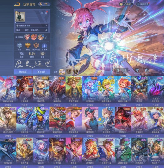 【Garena帳無綁無連、絕世傳說、無VIP、28英、47造】百星蜜莉姆 簡