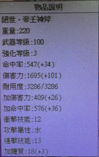 100等 強化3 1695傷(幻化開水水敏寵)