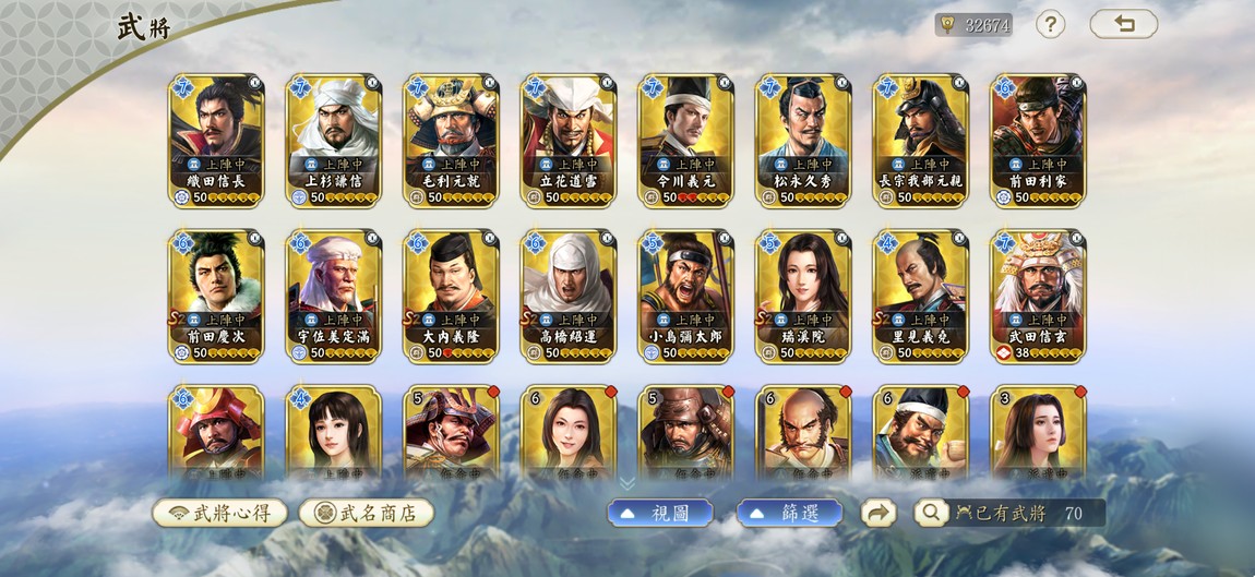 【50等】S20008 S2賽季霸業盟(織田 武田 金川2紅 上杉 黑田 長宗 立花)