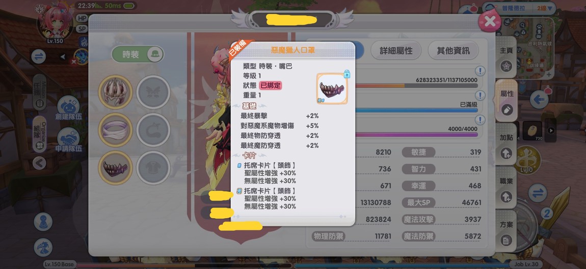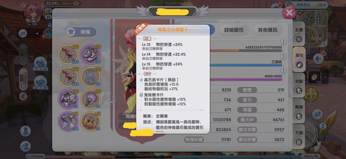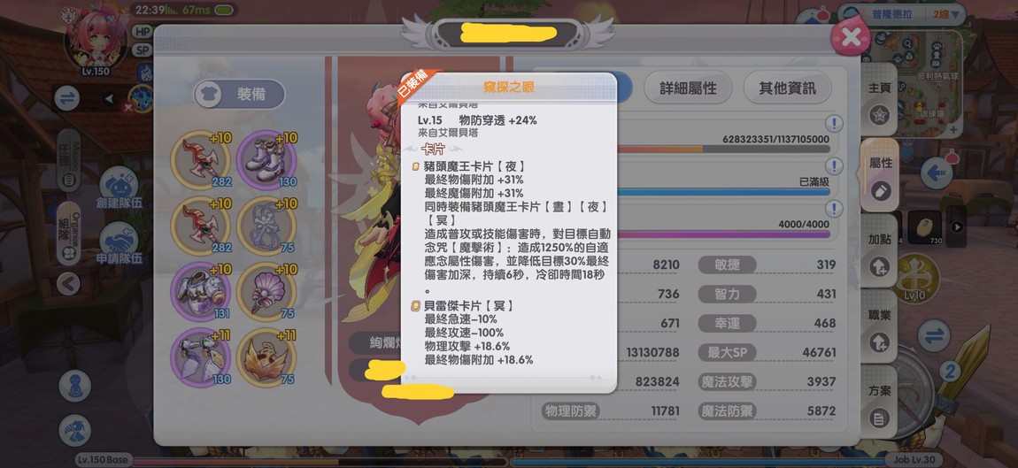 【150等、吉芬、槍十字】噴泉廣場/黑夜舞會/十六夜月/黃金領主 精5強11附9影10 靈虎槍十字