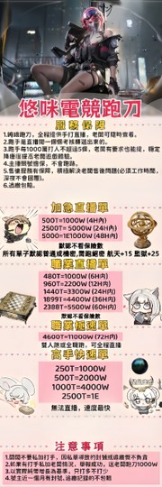 | 代打 一人2799T(損耗2000W) 包車3人6999T(損耗2000W) |