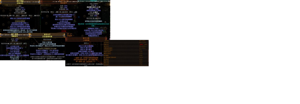 完美星團: 三顆大星團(冰/火/混沌),皆具備 頂抗 + 35%效果 + 3%召喚物攻速,屬性撐到極致。