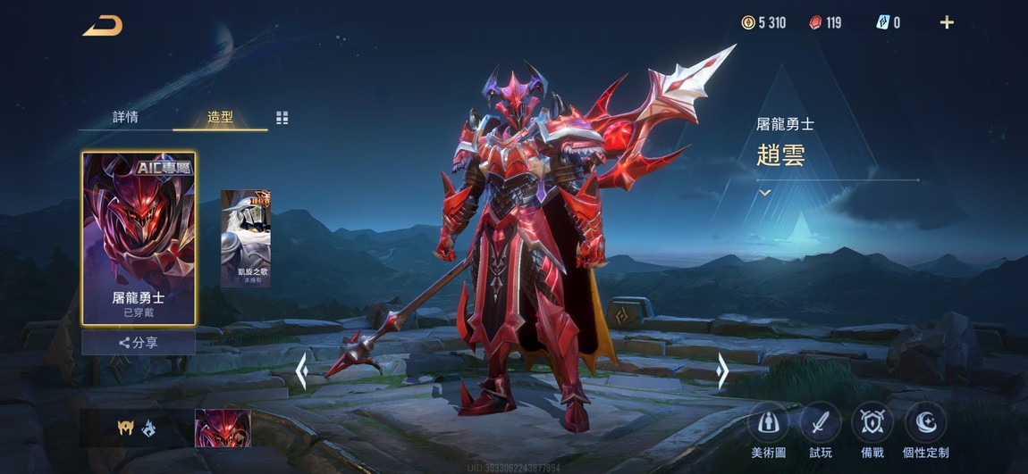 【Garena帳無綁無連、青銅、無VIP、9英、7造】特爾-熾翼輝光 莫拉-新年限定 趙雲-屠龍勇士 特效造型20選1 首儲 傳說水晶