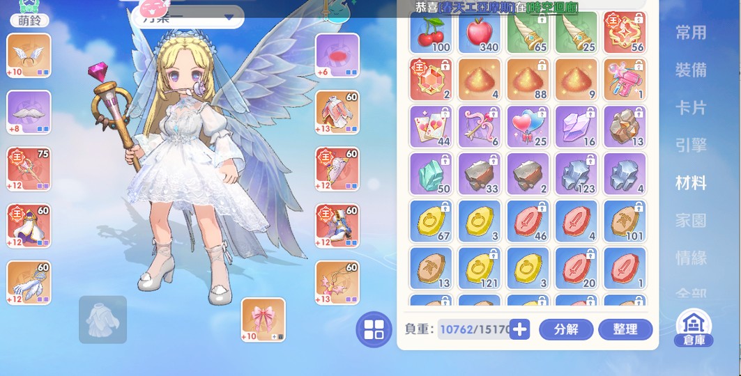 裝備:(紅)80天使套裝 兩件紅色 70紅武 82紅盾 包包還有兩件80等紅裝未綁