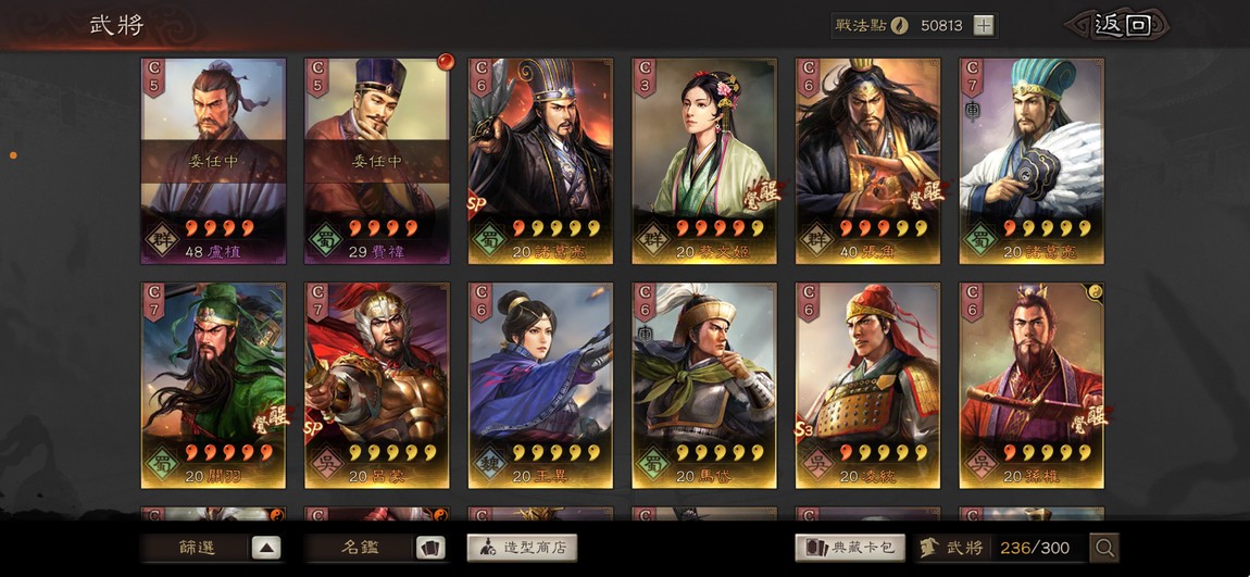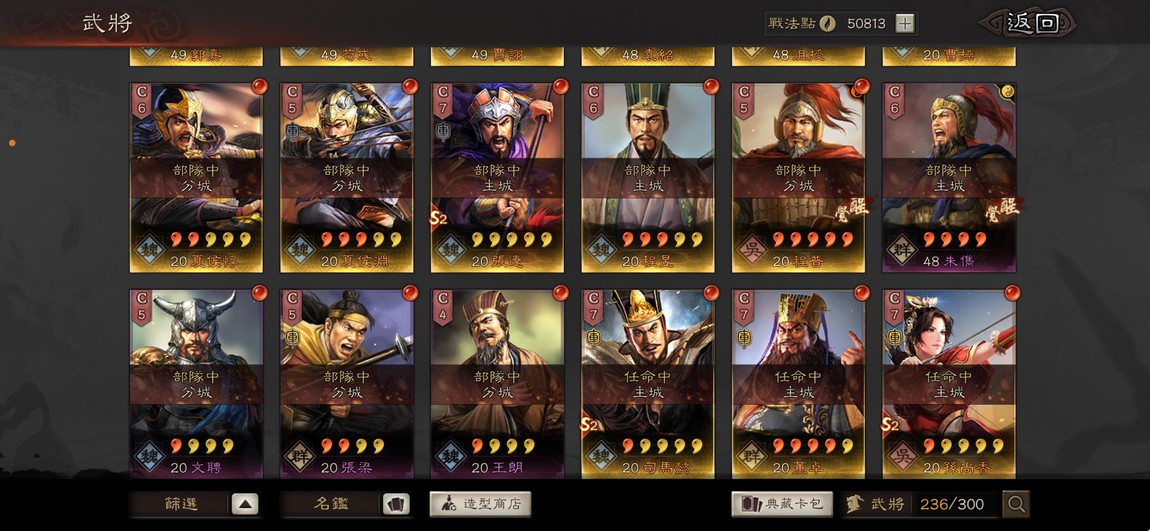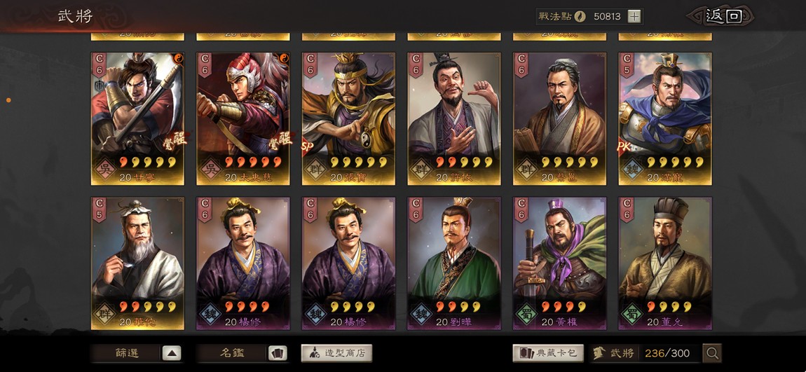沒有的武將也在圖中,很多都在身體裡了,我自己是玩等風、武謀、核彈張/網紅槍、群弓、吳弓/騎