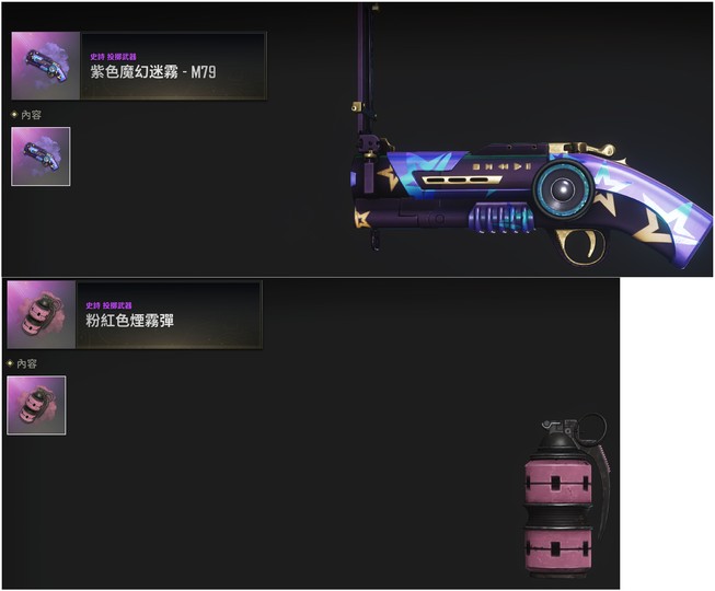 玫瑰金杜卡迪、惡魔之觸-ACE32、紫煙槍、粉色煙霧彈、其他雜項