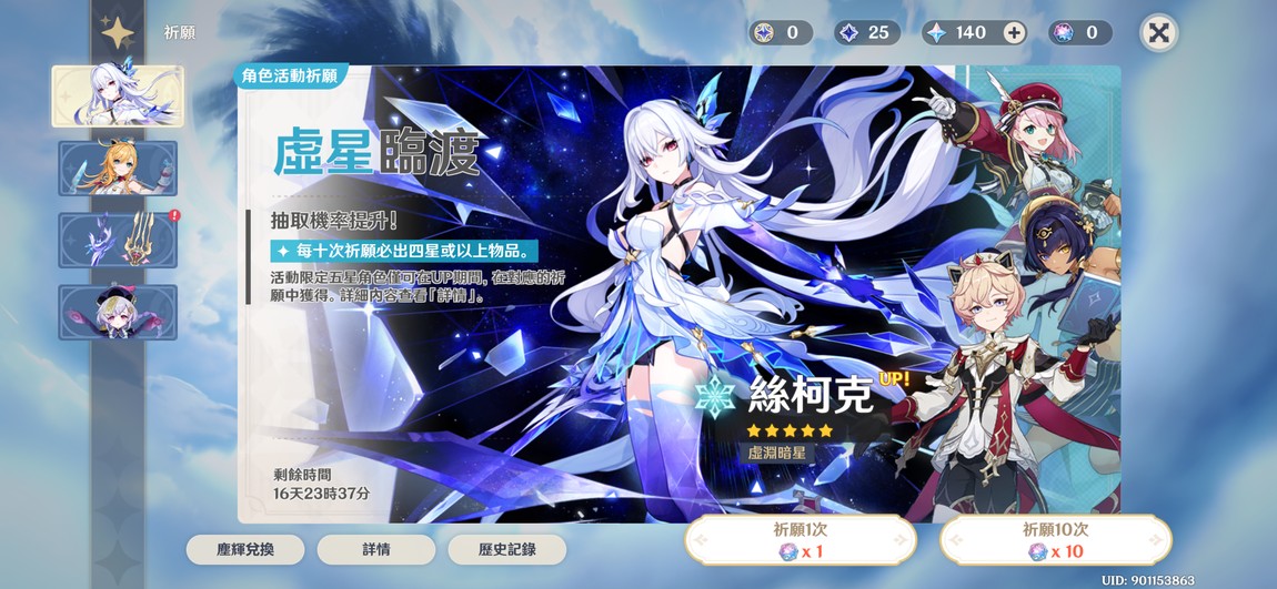 【女、23等、7金角、0金武】台服 神里凌人、萬葉、優菈、提納里莫娜、夢見瑞多五星初始低進度