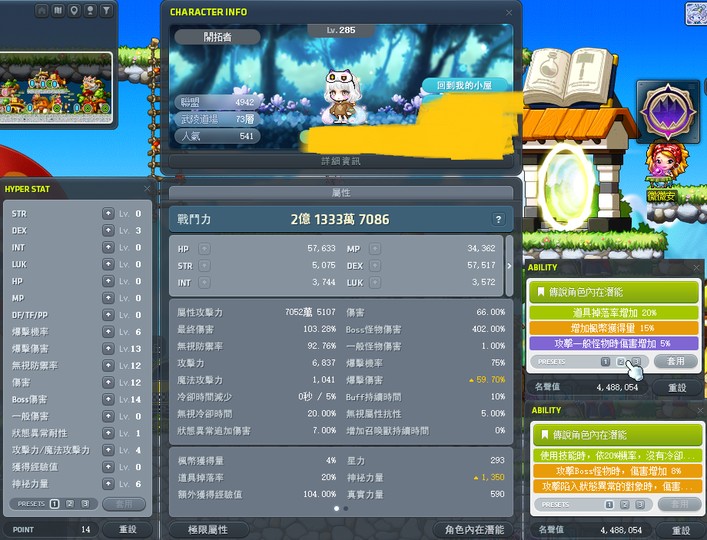 戰鬥力是待村莊什麼都沒開的數值(如圖完全乾淨主屬57k)