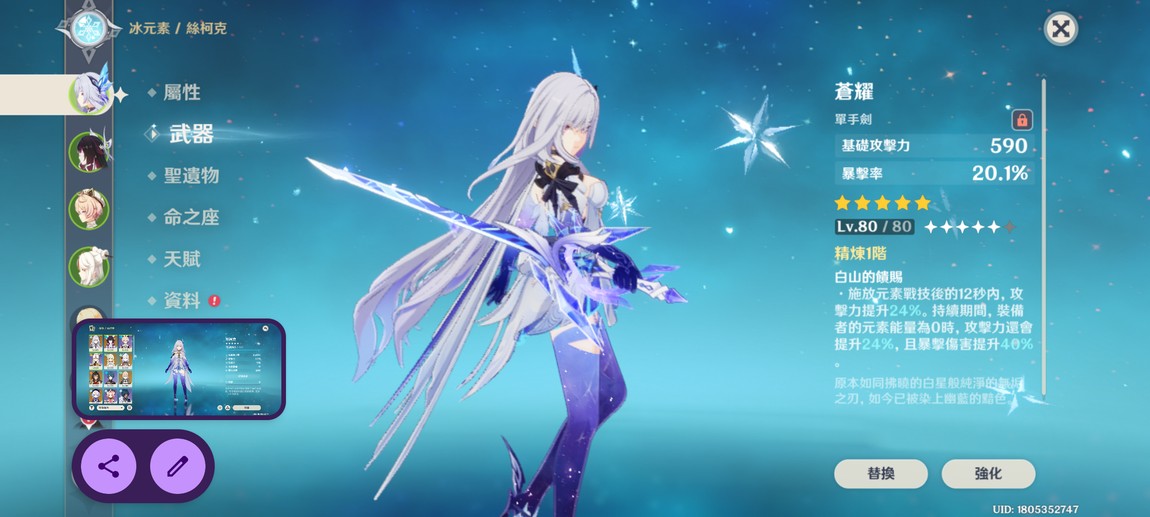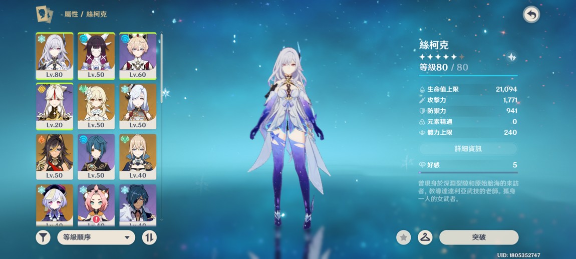 【女、50等、6金角、1金武】原神帳號低價出售、哥倫比亞、0+1斯科克