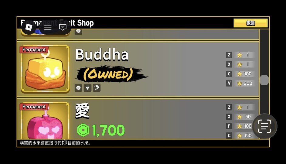 遊戲帳號資訊:Roblox (Blox Fruits)