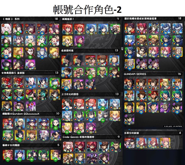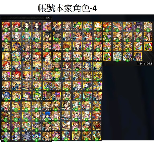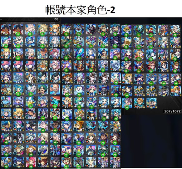 4. 帳號資產資料,角色數量大致取整數數量,非實際真正數字,但介紹圖已經完整呈現數量。