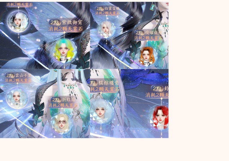 頭髮:限定寒夢、祈明、驚焰、玄芝/熙明/齊雪/靈蔓/白鹿