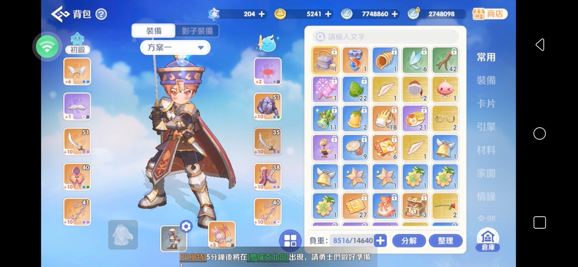 SSR寵物:莉塔2、芙蘿1、暮夜2、愛麗絲女僕2、佛曉2
