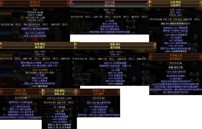 保護破碎時施放 4/20 - 漩渦 投射 21/20 - 凜冬之眼(被等級1的快速投射輔助) 20/20 - 秘能波動輔助 21/20 - 增加暴擊傷害 21/20 - 霜法輔助 3/23